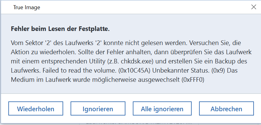 Auch Acronis hatte seine Probleme mit der SDCard