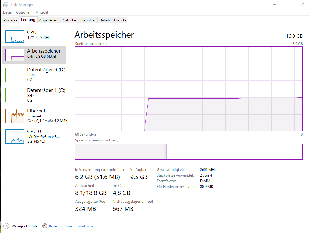@NiklaSge208 : stell doch mal Screenshots vom Taskmanager rein, dann kann man mal schauen ob was ungewöhnliches vor sich geht.
