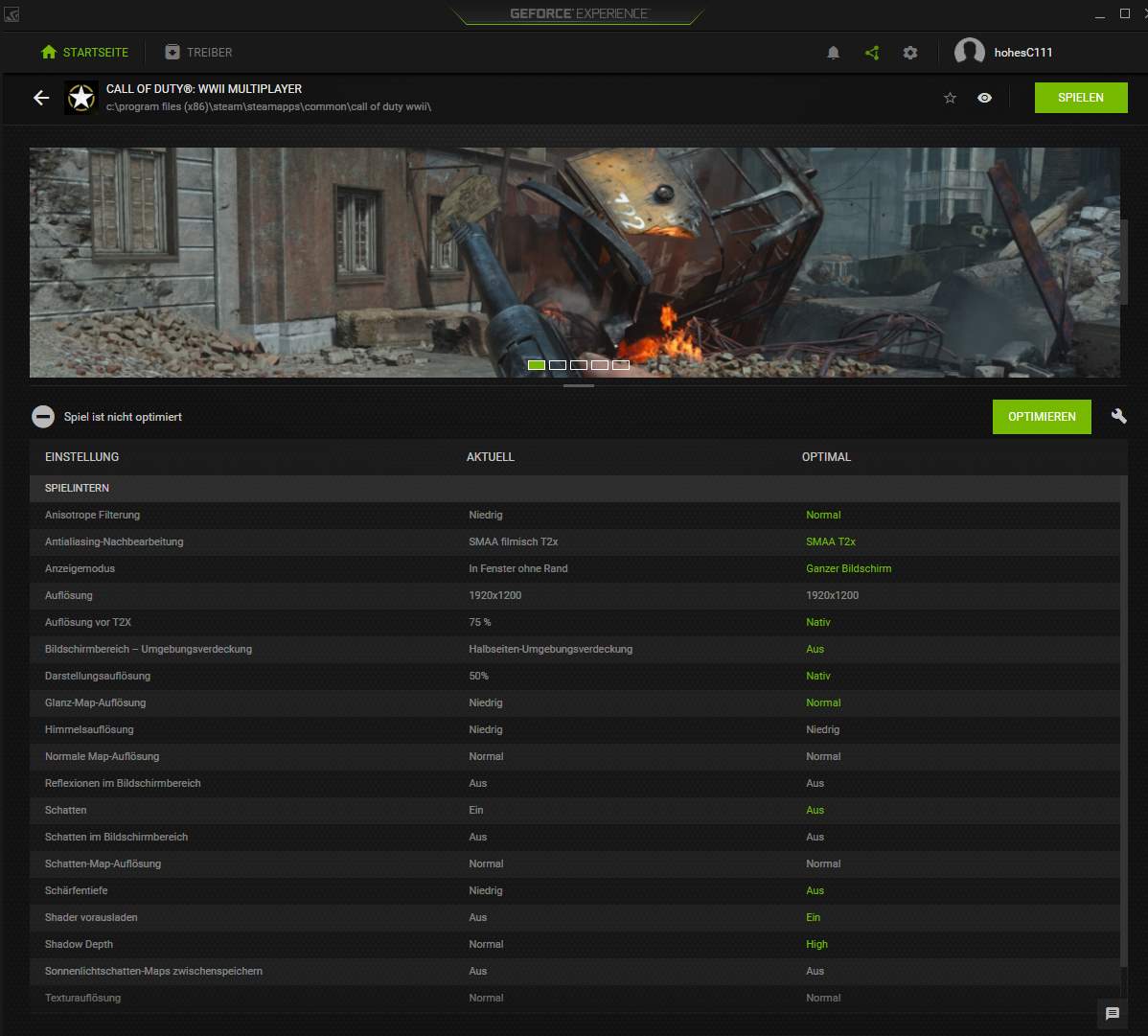 bei COD WWII lässt meine Grafikleistung bei niedrigen Einstellungen zu wünschen übrig.