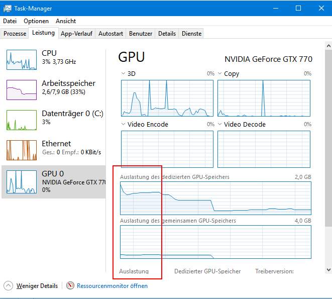 Auslastung des didizierten GPU-Speichers