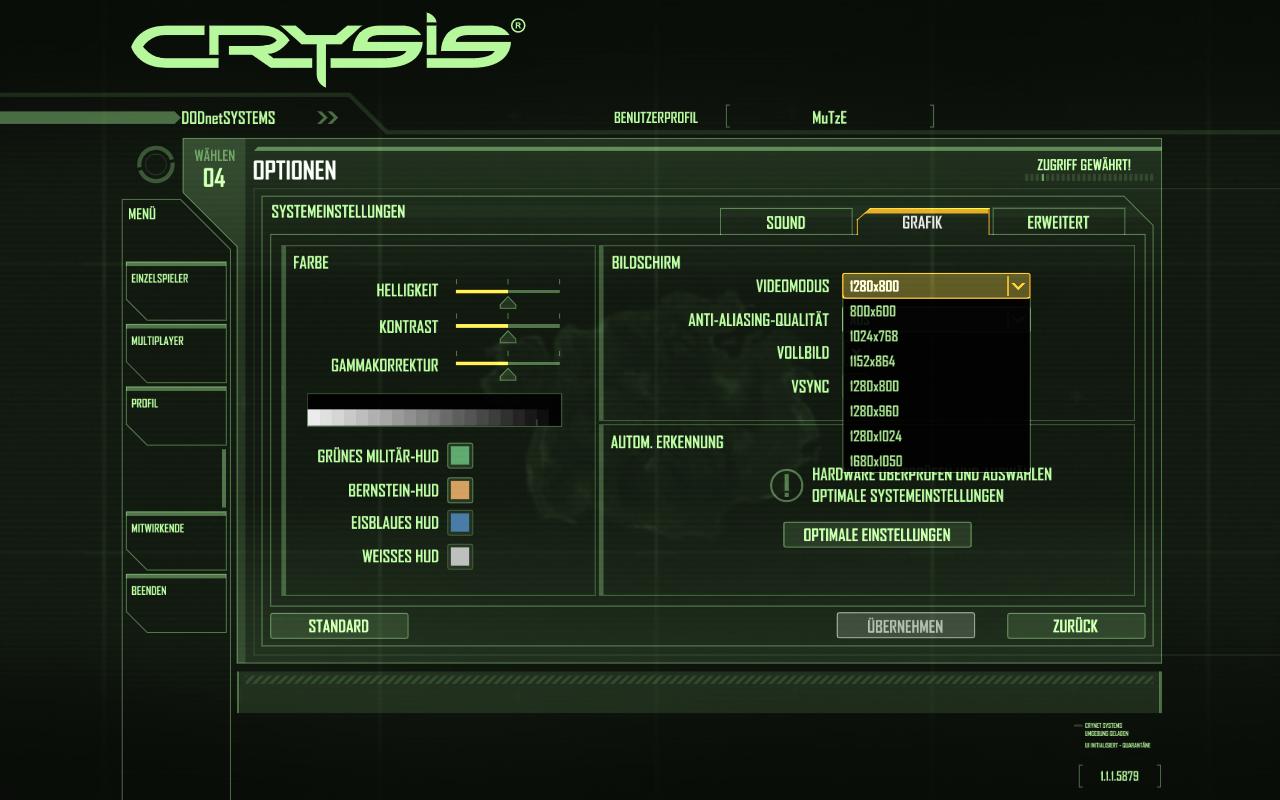 Ich möchte Crysis mit einer Auflösung von 1280x800 oder sogar 1440x900 spielen.
