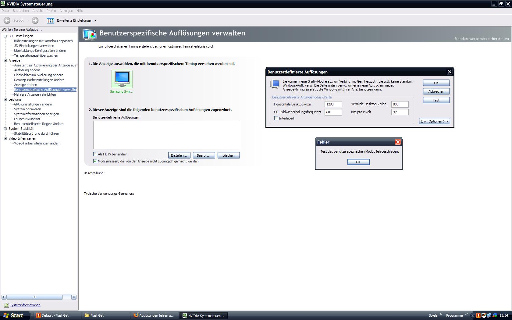 Jetzt zum Problem. Unter XP stehen diese Auflösungen nicht zur Verfügung, jedoch unter Vista.