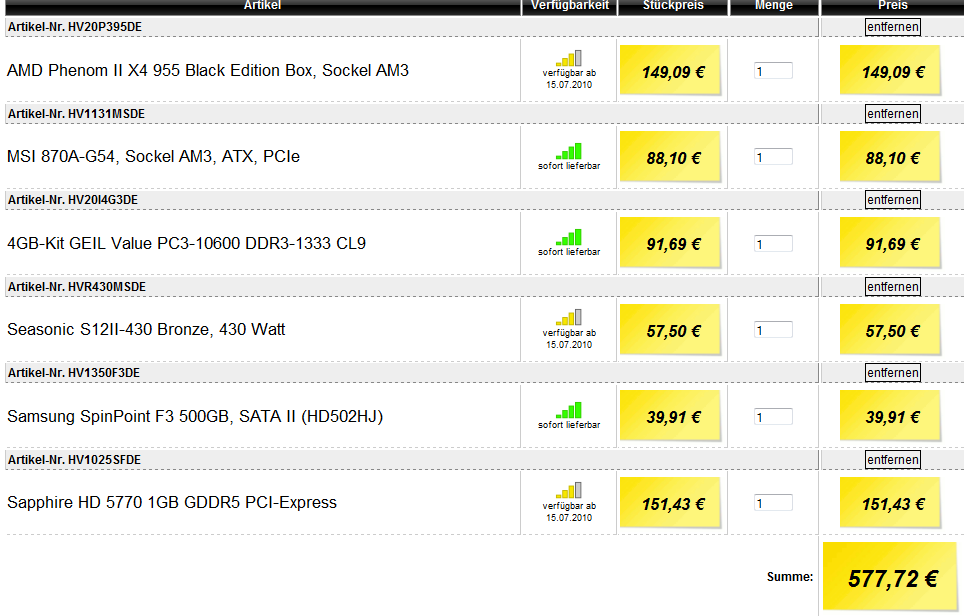 Hatte bei meiner Konfiguration noch ein CD/DVD-Laufwerk/Brenner sowie 2 Lüfter vergessen, aber die werden den Braten nicht fett machen, oder?