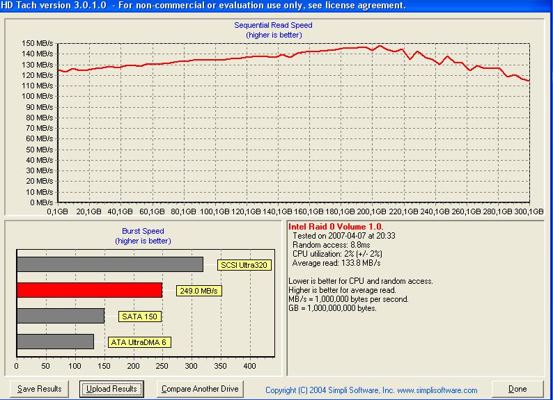 Habe 2 WD Raptoren WD 1500AD 150GB 10000 u/min. 16MB als RAID0 verbund.