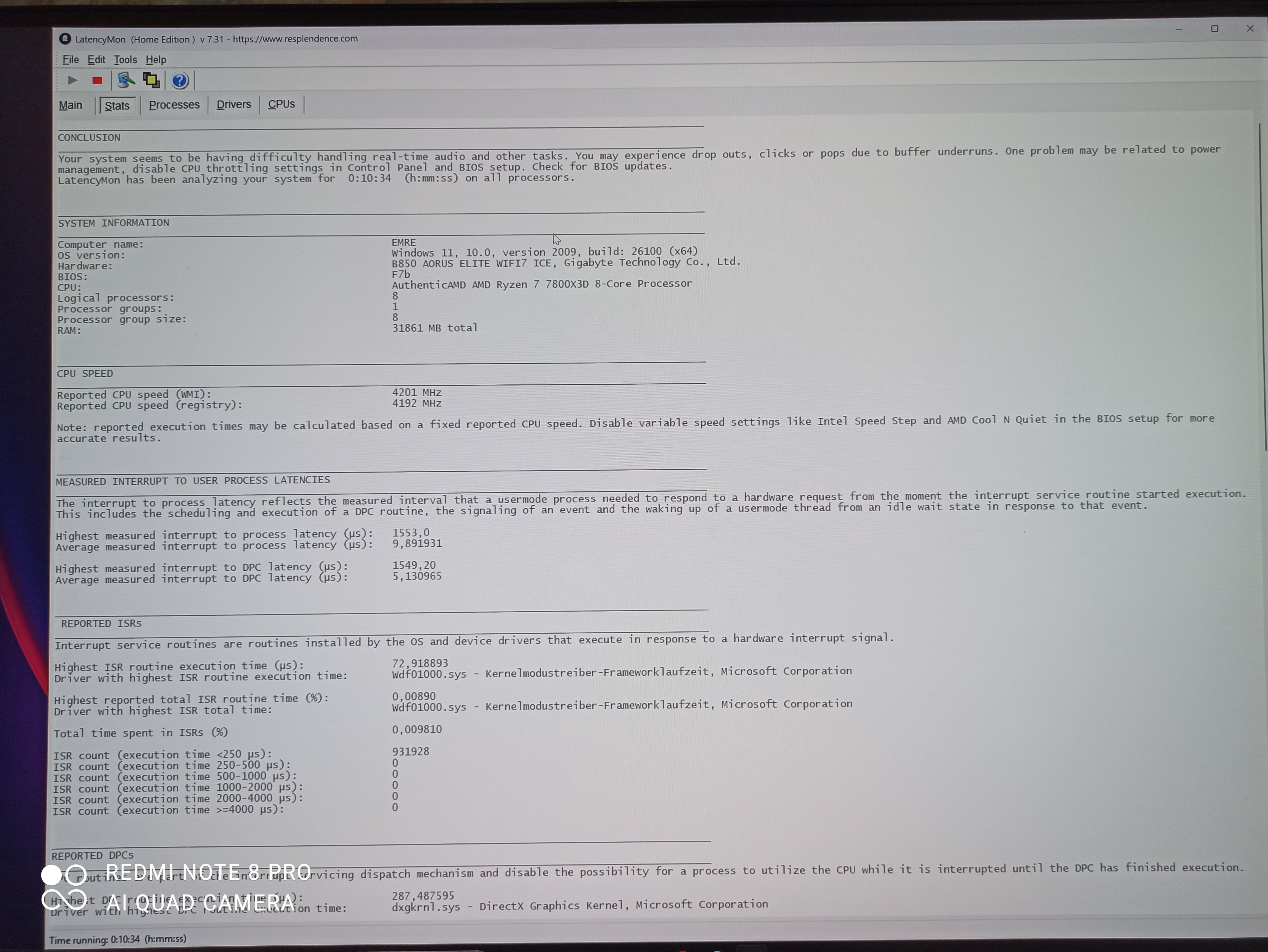 LatencyMon spuckt manchmal nach einer Minute, manchmal nach 10 Minuten folgendes aus: