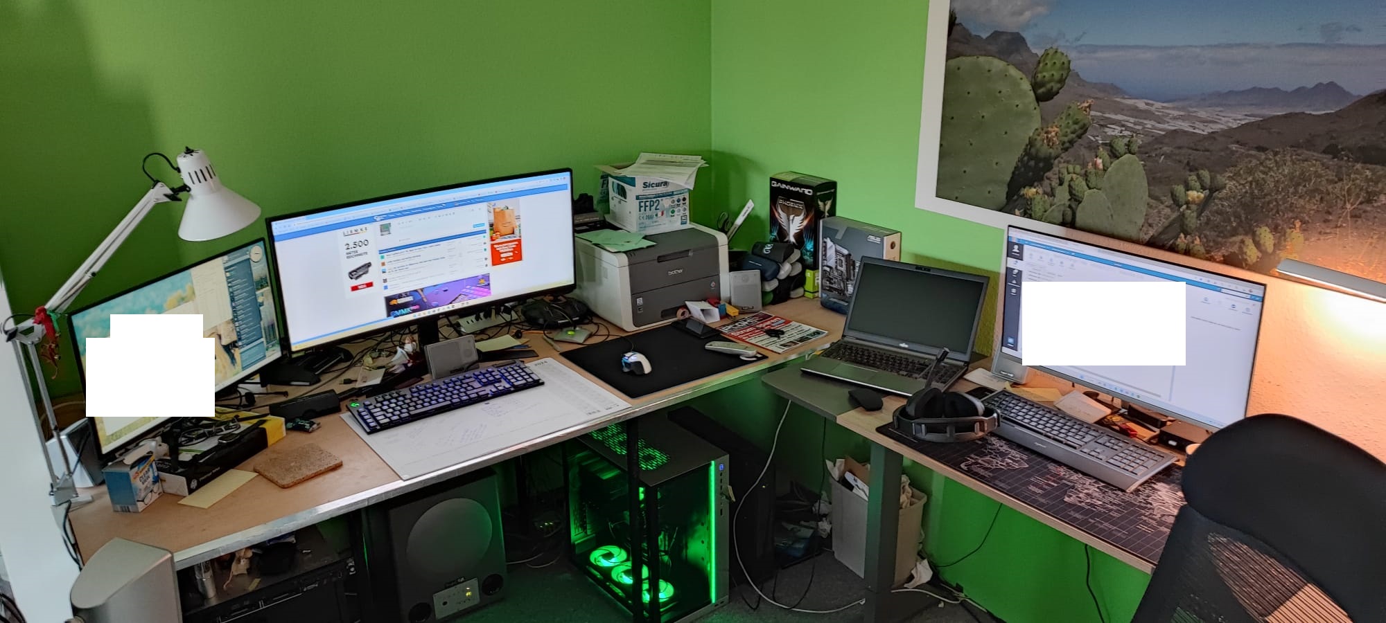 Nachdem bei mir auch an 3 Tagen fest Homeoffice ansteht, habe ich in einen hochfahrbaren Tisch investiert. Ansonsten hätte ich neben dem 34 Zöller gerne auch jeweils einen Monitor. Monitore kann man ja nie genug haben, aber dann wird es schon recht eng.