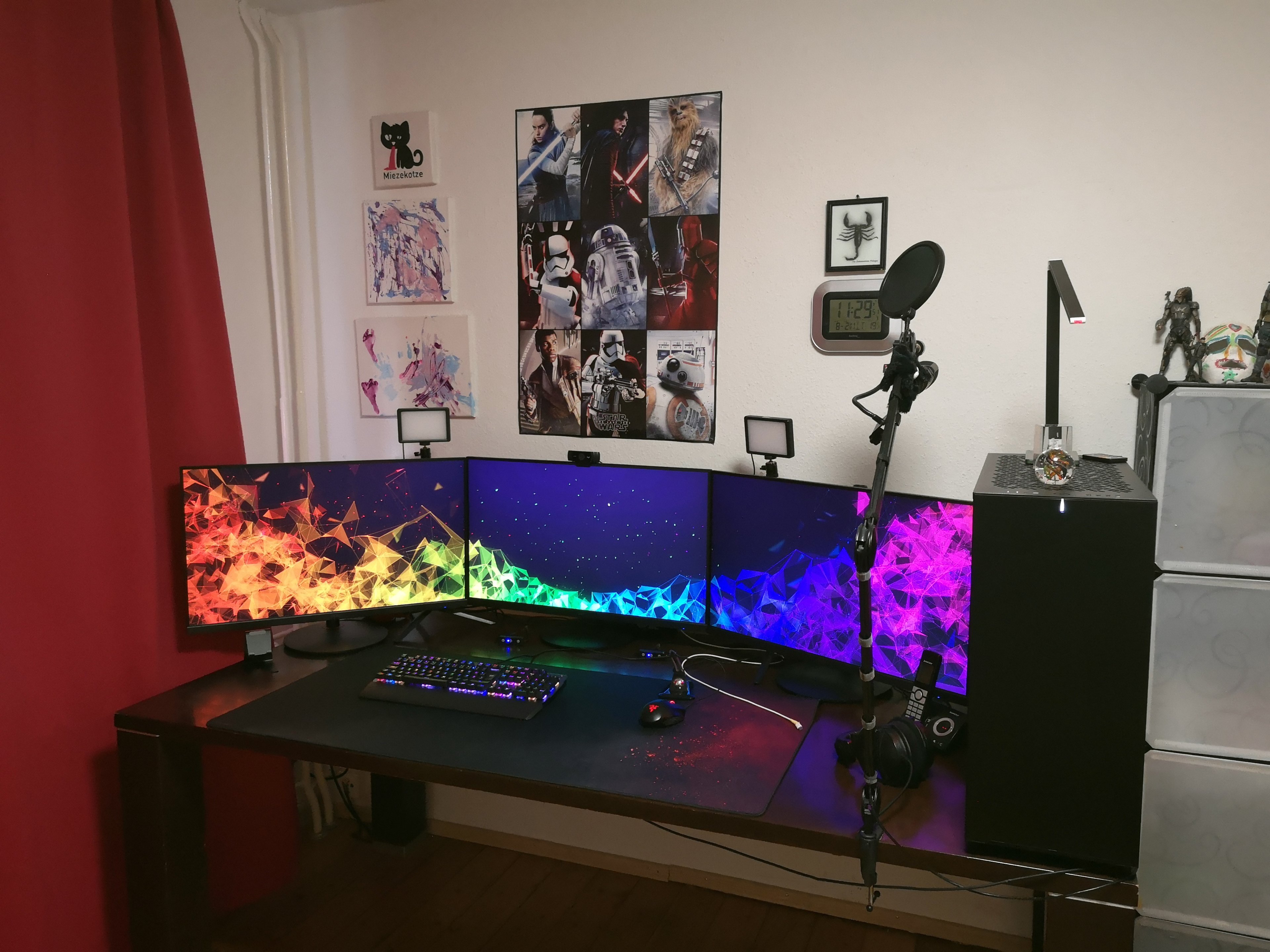 Ich habe jede Menge weiße LEDs in Tastatur und hinterm Monitor. Keine Ahnung ob das rgb ist. Also bunt käme mir nicht in die Tüte.