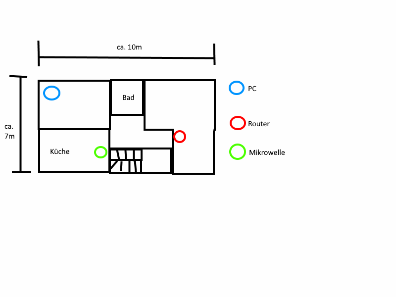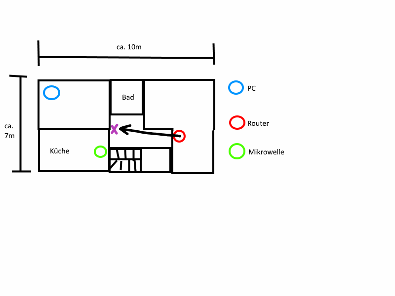 Zwischen PC und Router ist ca. 9m Luftlinie.