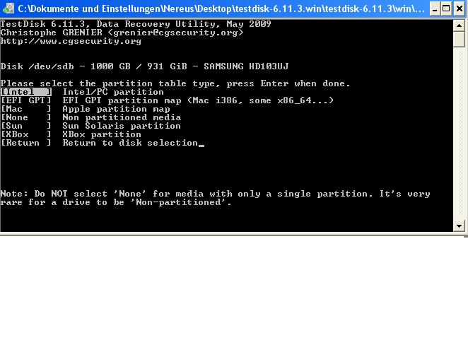 es ist keine partition erstellt auf der 1tb platte