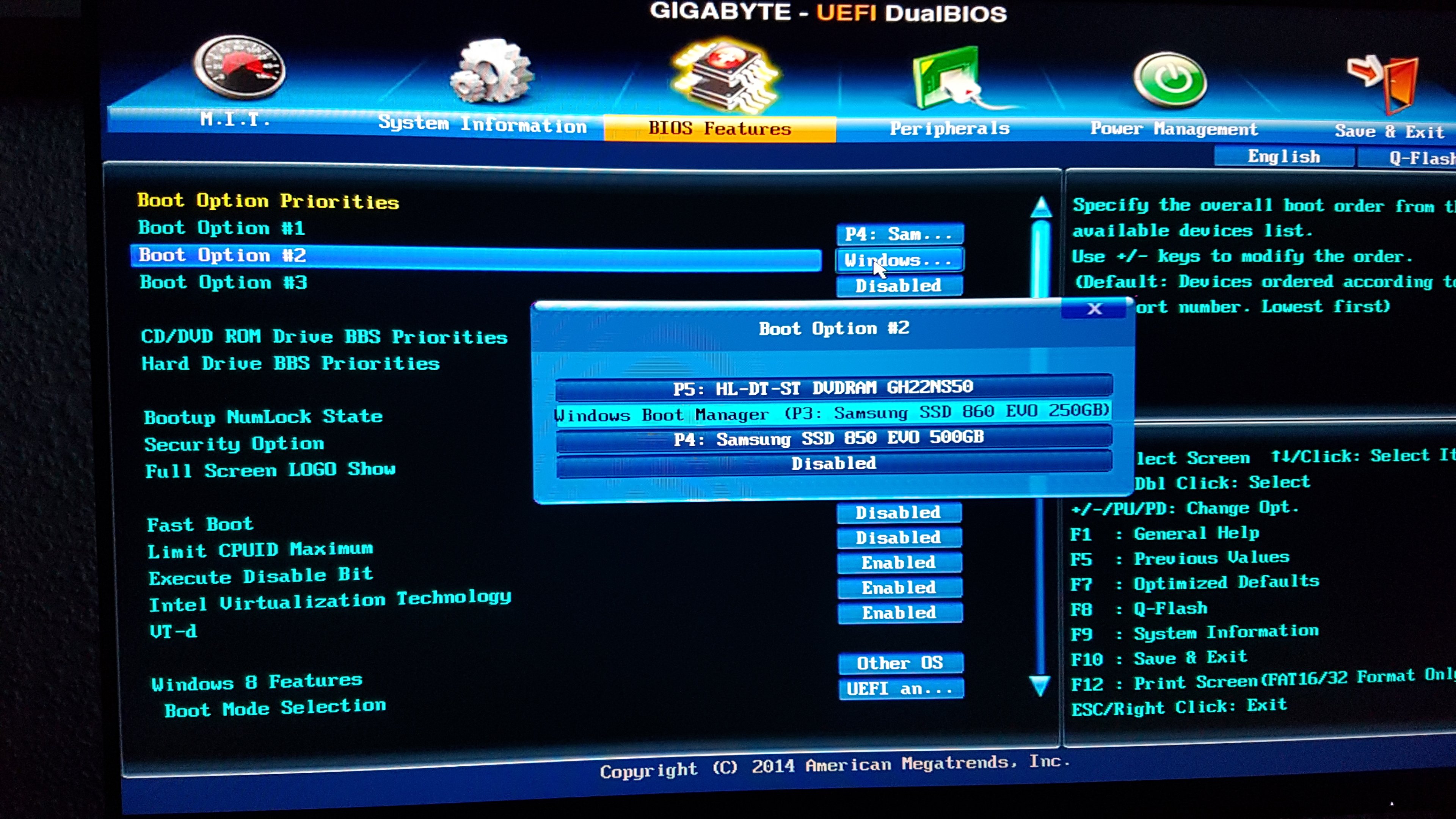 Leider bootet er dann aber trotzdem von "Groß". Um von "Klein" booten zu können, muss ich im Bios jedesmal die Bootreihenfolge ändern, und das kann ja kein Dauerzustand sein.
