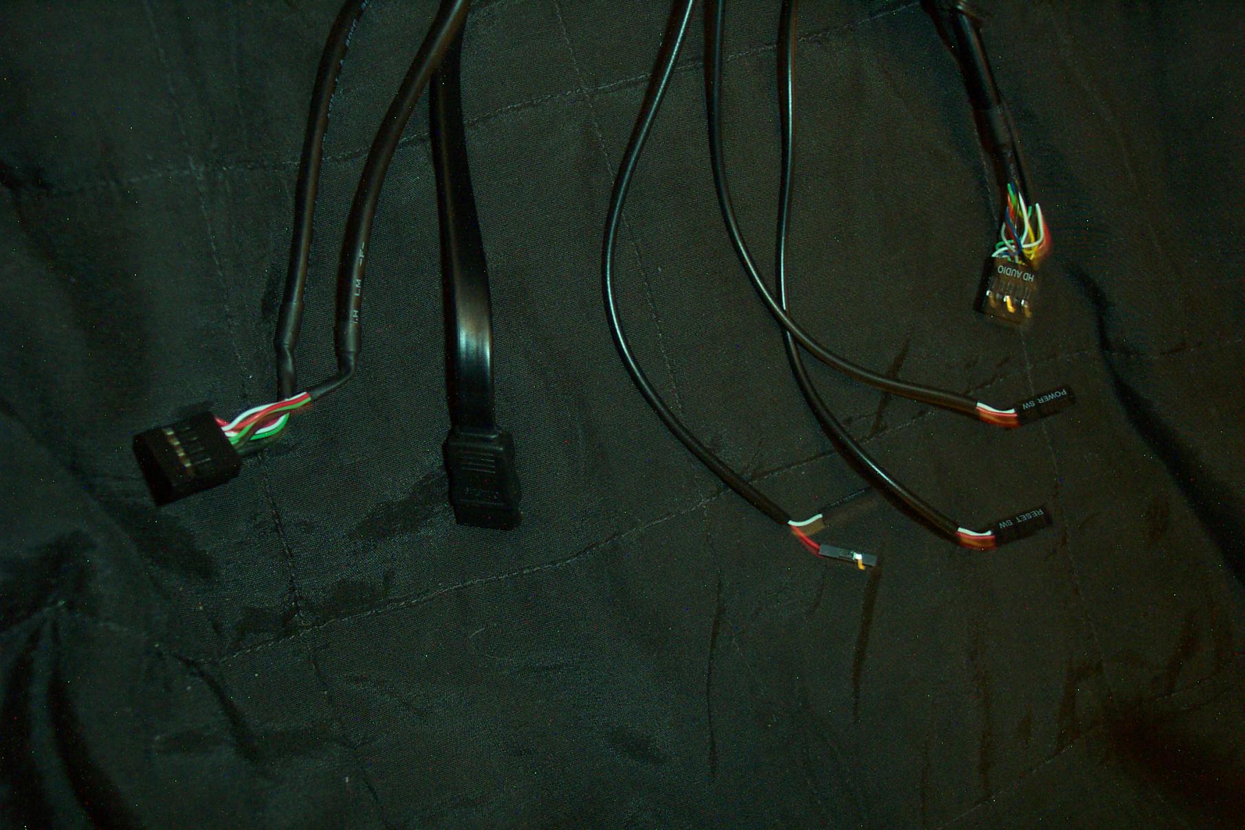 Der erste Schritt besteht dann darin, alle Kabel die zum Frontpanel führen vom Mainbord abzukoppeln. Das sind stadartmäßig (von links nach rechts auf dem Bild) die Kabel für Front-USB, (E-)Sata, Power-LED, Reset, Powerswitch und Audioconnector.