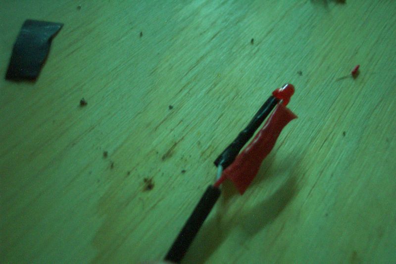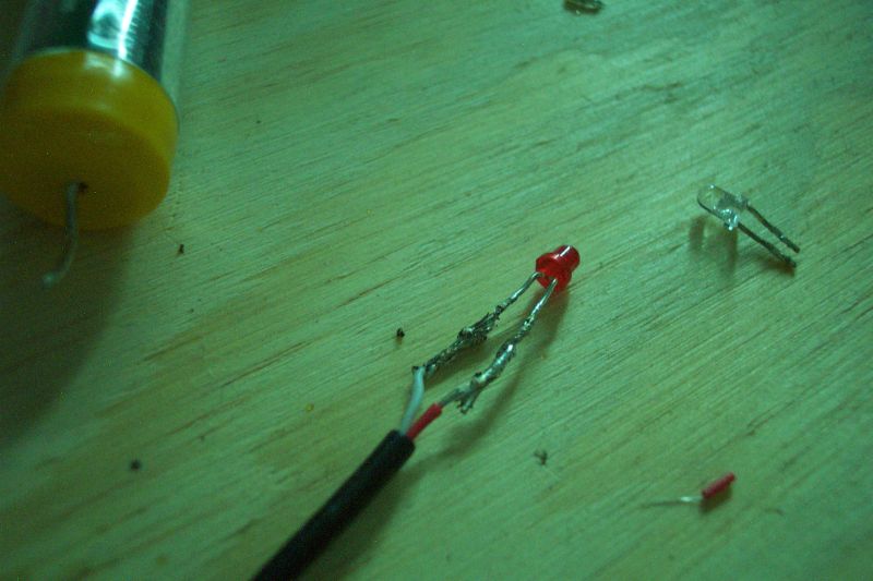 Eine 3mm LED in der gewünschten Farbe (meine LED ist für 1,6 V und 10mA ausgelegt, läuft aber ohne Vorwiderstand tadellos.)