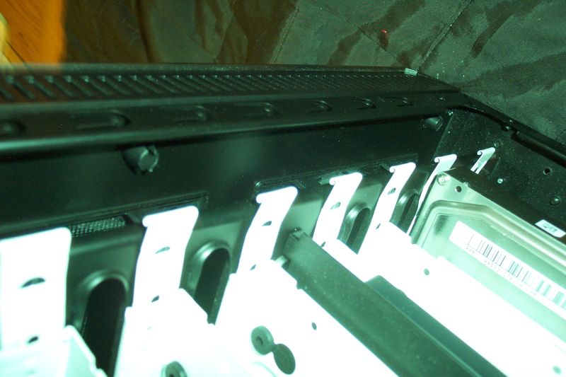 Die erste Schwierigkeit ist das Frontpanel zu entfernen. Es ist links und rechts über jeweils drei Noppen im Gehäuse verankert. Wenn man mit einem kurzen Ruck genau auf höhe der Noppe seitlich am Lüftergitter des Fronpanels zieht, solle es sich a der Stelle lösen. Wenn nicht, kann man auch die beiden Laschen der Noppe im Gehäuseinneren zusammendrücken.