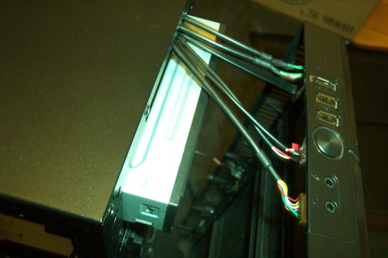 Dann wird das Frontpanel abgezogen. Da die Kabel noch hängen müsst ihr die jetzt durch das Gehäuse und alle Öffnungen nachführen bis sie frei sind.