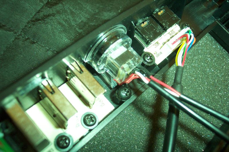 Um der Powerknopf zu lösen müsst ihr erst die zwei kleinen Schrauben (3. und 4. von Links) lösen und dann den schwarzen Plastikriegel herauruckeln (lasst auch vom Bild nich irritieren, das ist nach dem LED Tausch, sieht aber fast gleich aus). Übrigens, um die USB Anschlüsse zu tauschen muss man die linke Platine raus schrauben und dort die USB3 Anschlüsse auflöten. Dass folgt dann im Detail später.
