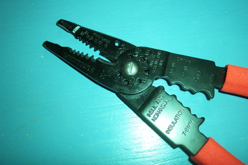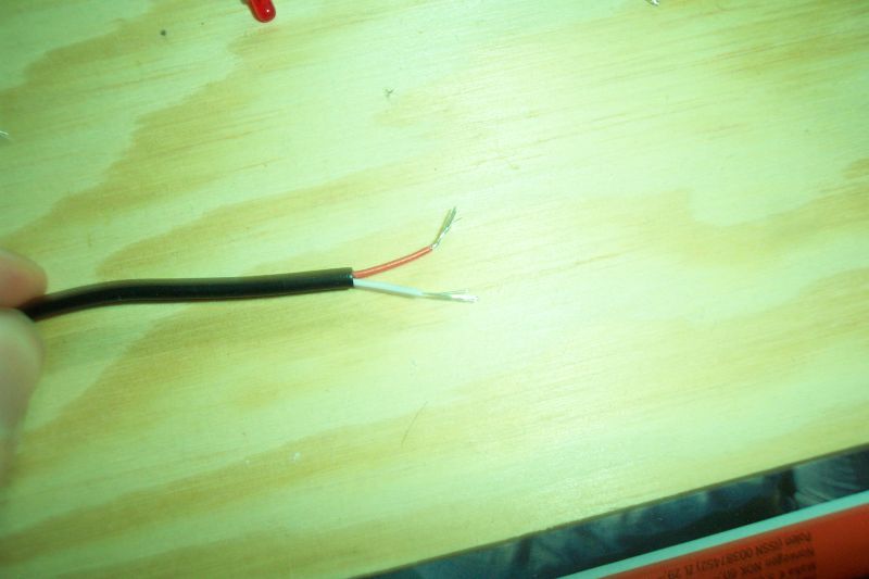 Die Verbindungsstelle von LED und Kabel ist mit schwarzem Gummi umwickelt, das muss mit einer spitzen Schere aufgeschnitten und abgezogen werden. Danach löst ihr die Lötstellen zwischen Kabel und LED mit einem Lötkolben. Ich empfehle die Kabel mit einer entsprechenden Zange noch ein stückweit ab zu isolieren. Ohne so eine Zange ist das bei 0.8mm Drahtstärke schwierig.