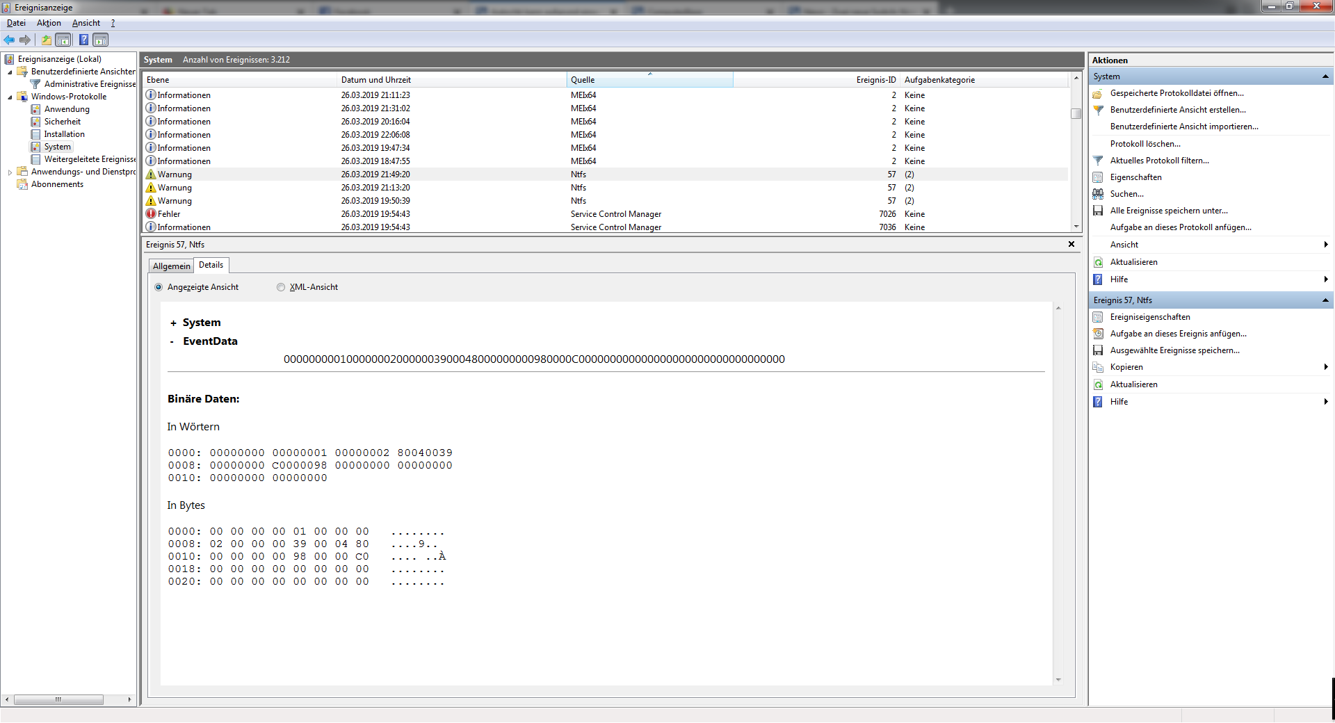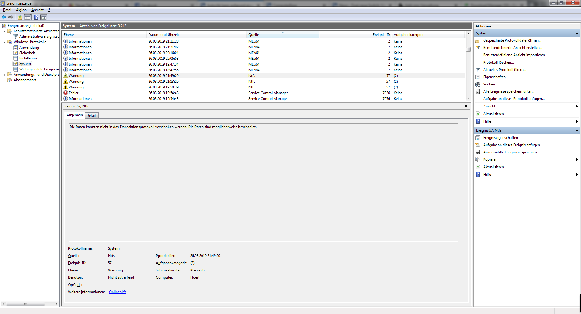 Ach ja, Quelle steht Disk oder Ntfs bei den relevanten Einträgen die uns jetzt hier interessieren
