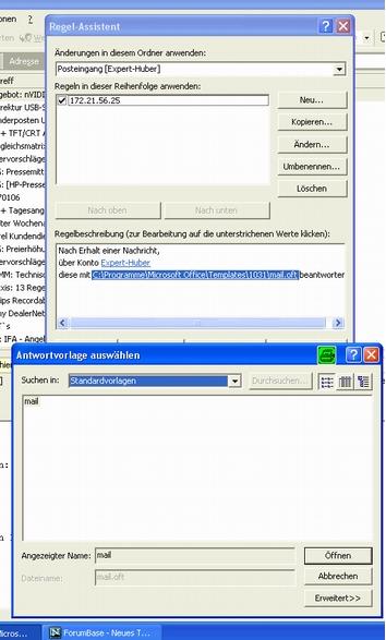 Die Nachrichtenregel habe ich auch erstellt, nur leider kann ich die nachricht, welche zurückgeschickt werden soll, nicht erstellen/bearbeiten.