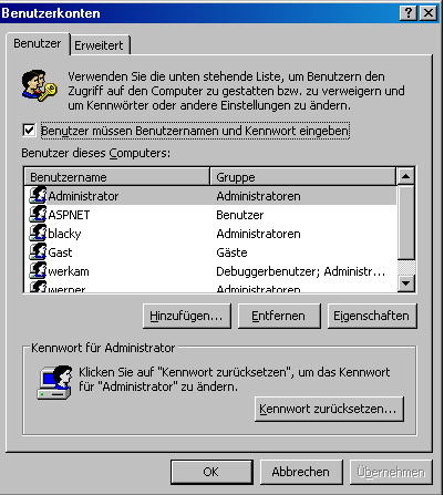 Hi, ich ahbe mal ne Frage an euch. Also ich habe zu Hause einen kleinen fileserver der mit FreeNAS läuft. Jetzt habe ich das ärgerliche Problem, dass ich mit einem anderen benutzer von diesem PC aus auf den Server zugreifen will, doch ahbe ich beim XP Computer leider automatisch ohne Benutzername und Kennwort einzugeben anmelden angewählt, nun kann ich den Benutzer einfach nicht wechseln, könnt ihr mir da irgendwei weiterhelfen?