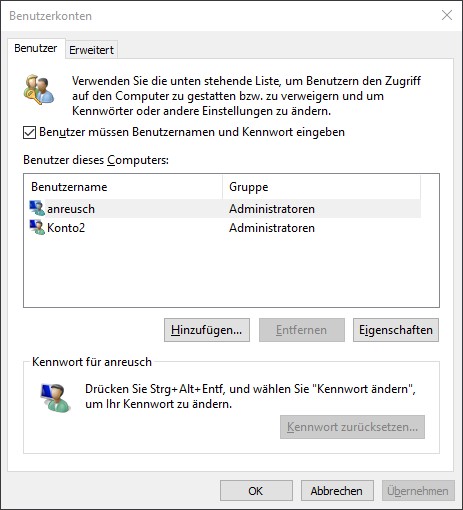 Im netplwiz habe ich aktiviert, dass zur Anmeldung ein Passwort eingegeben werden muss.