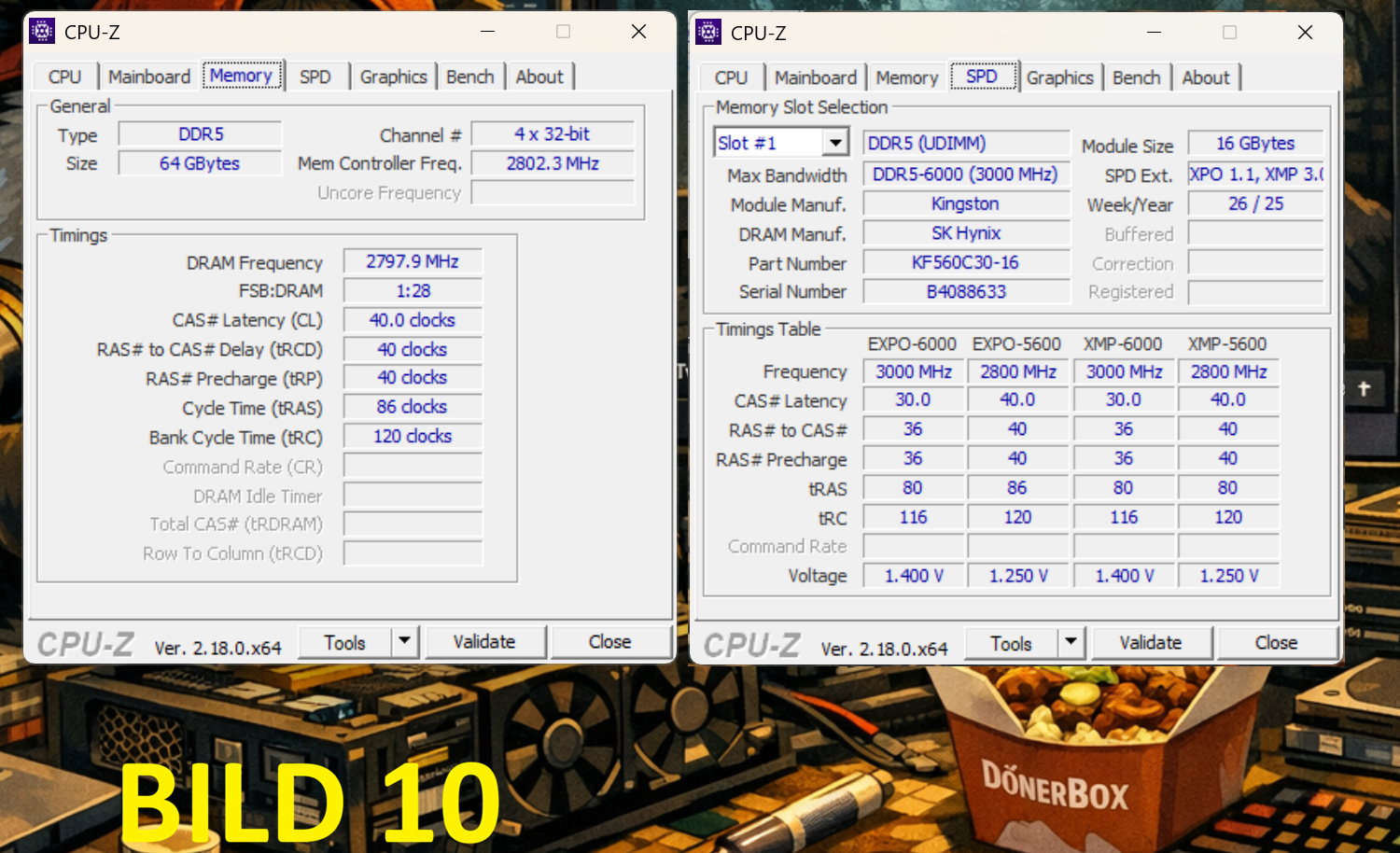 Jetzt habe ich EXPO1 mit mehr MHz von 3600 bei 1.120 V auf 5600MHz bei 1,25V laufen, Bild 9 und 10.