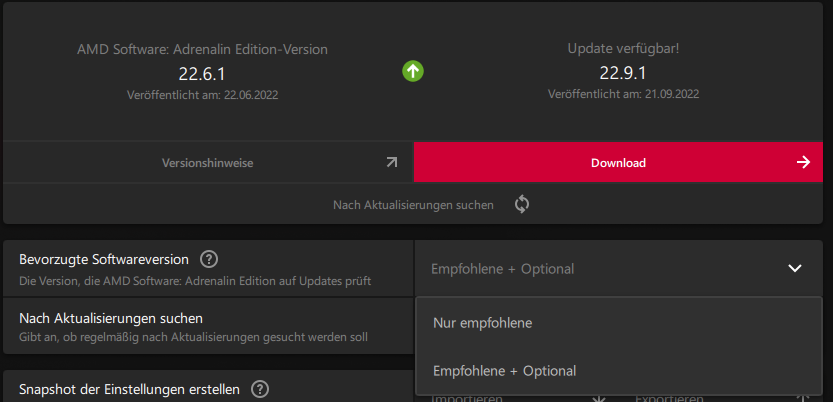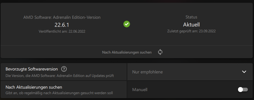 noch eine frage , das tool von amd das mir den adrenalin treiber installiert hat nahm version 22.5.1 aber scheinbar gibt es auch 22.9.1 seit kurzem .....selbst die adrenaline software zeigt die neue version nicht an wenn man da nach updates suchen lässt ...