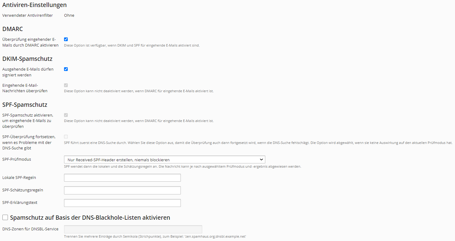 - TXT und CNAME Records inklusive SPF und DKIM Einstellungen =