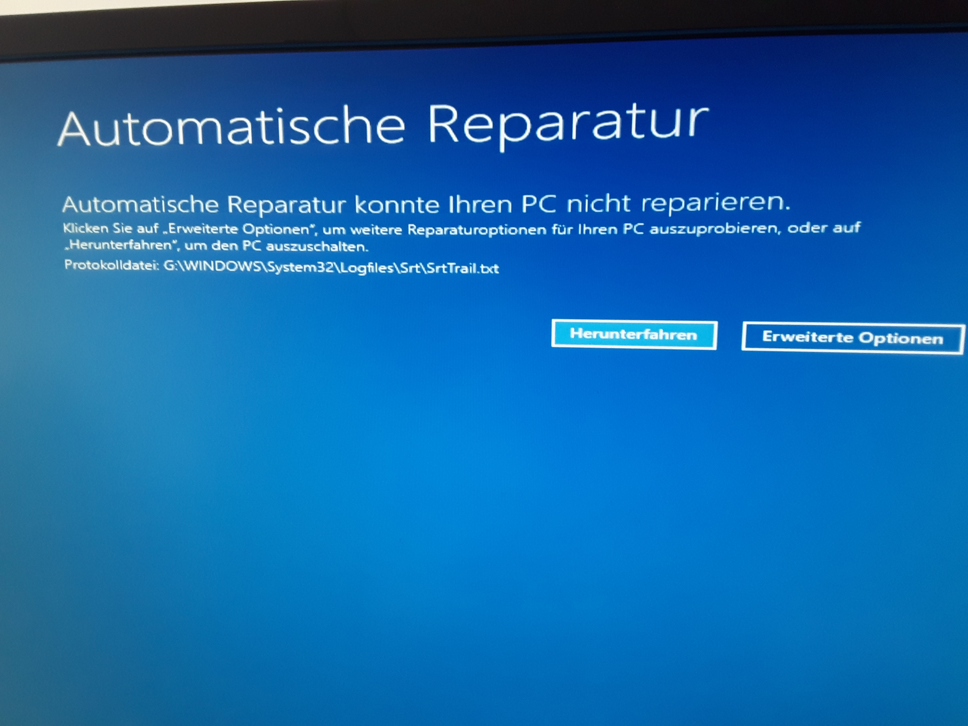 Habe ein paar Screenshots gemacht. Auch ein Auszug aus der srt Log. Da ist ein Fehler. Evtl. Hat das etwas damit zu tun. Ich habe noch nicht vom Bootmedium gebootet, da ich noch keins habe . War ein Upgrade aus einer win 7 Installation.