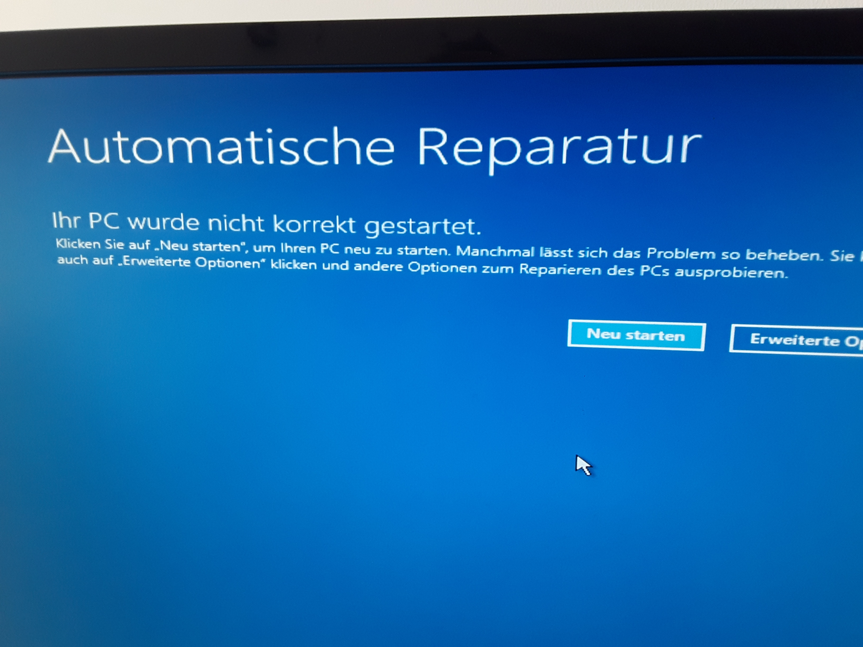 Aujedenfall kommt jetzt immer automatische reparatur / Pc Diagnose und dann dass der Computer nicht korrekt hoch gefahren werden konnte.