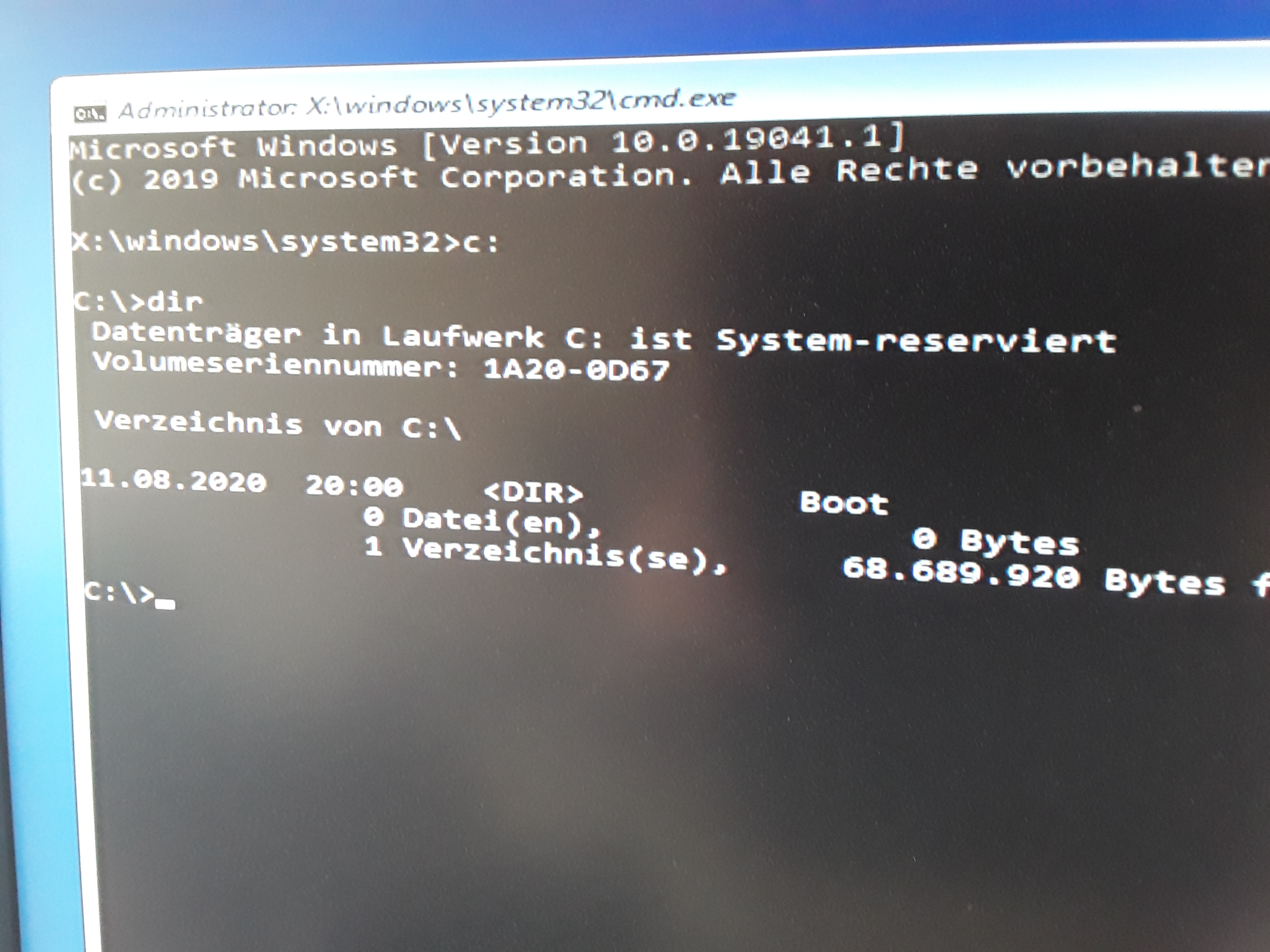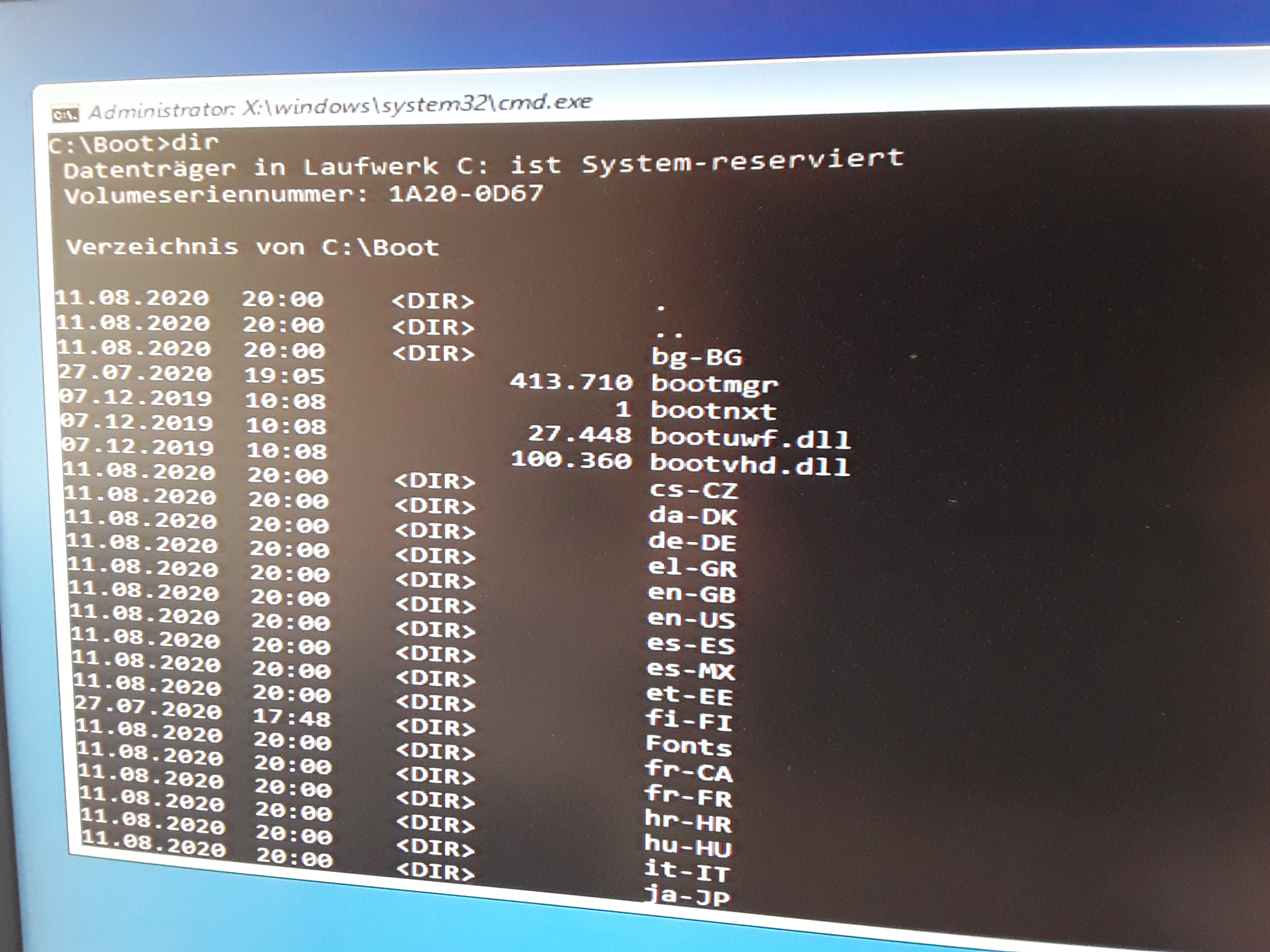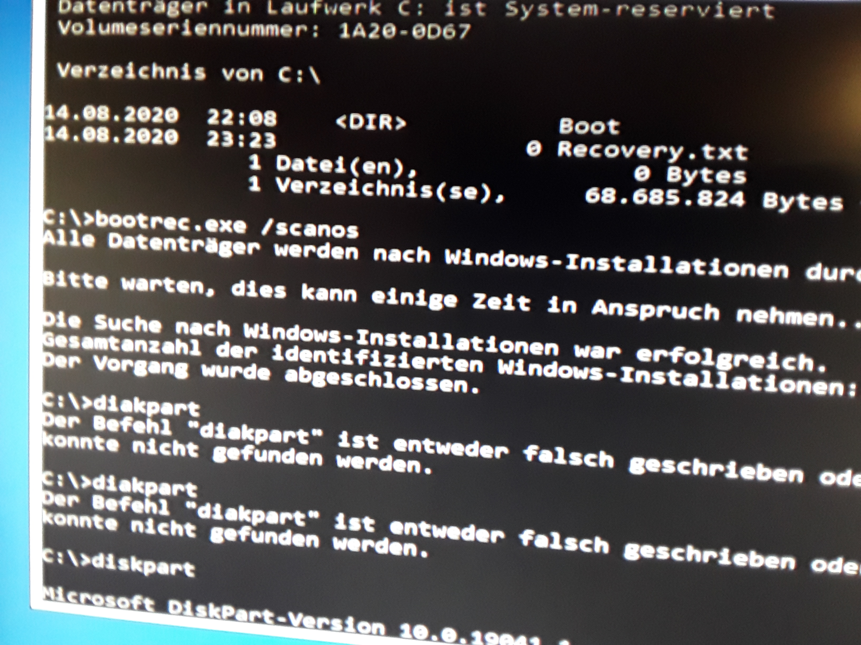 Beim Befehl bootrec wird auch keine Windowsinstallation gefunden