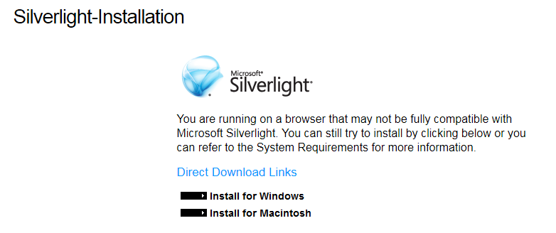 Er braucht das Silverlight Plugin für den Browser (Mozilla 64 bit). Ok, möchte es herunterladen und er wählt mir immer automatisch die *dmg Datei aus anstatt eine mit Windows kompatible Version.