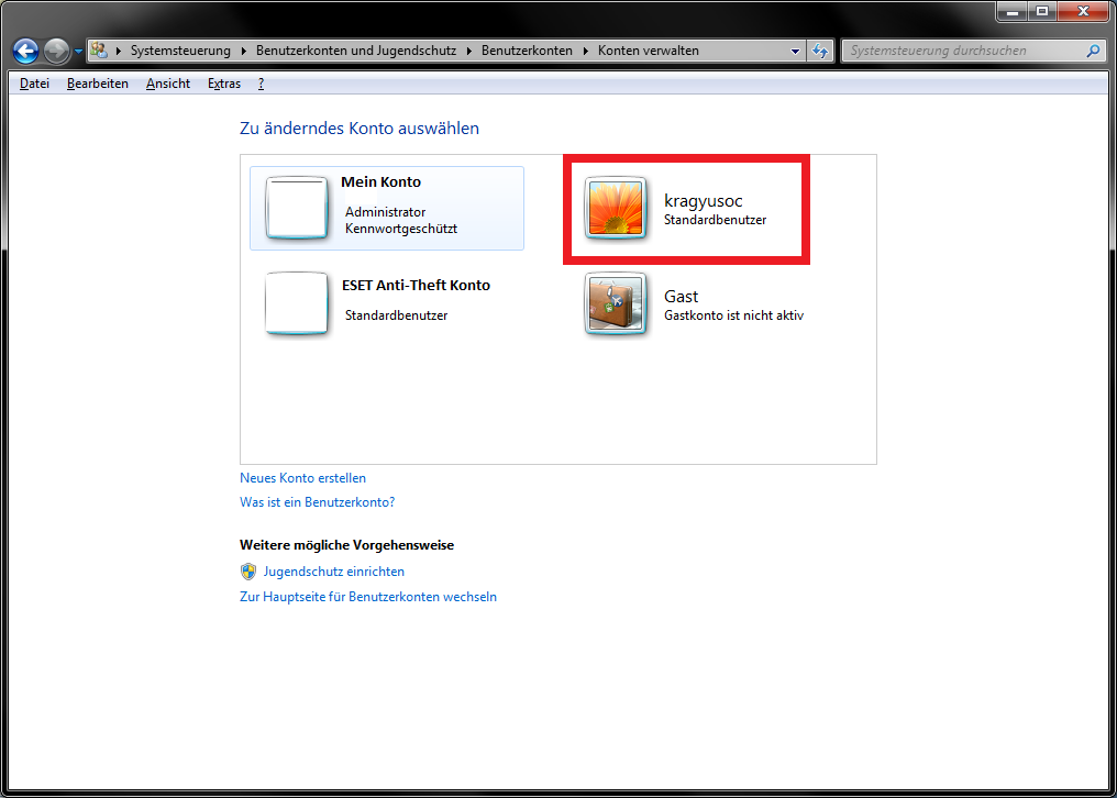 Das Benutzerkonto hat den Namen "kragyusoc", hier im Anhang ein Bild dazu.