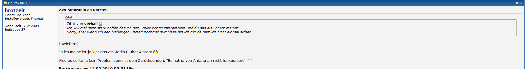 Solltest du ernsthaft vorhaben das Radio zurückzuschicken bist du ein Betrüger. Ich hoffe das der Shop das mitbekommt, und rechtliche Schritte gegen dich einleitet.
