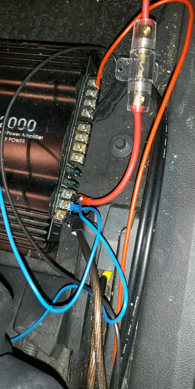 Die Endstufe sollte eigentlich in dne Kofferraum zum Woofer, aber Amazon hat ein viel zu kurzes Kabel verschckt...