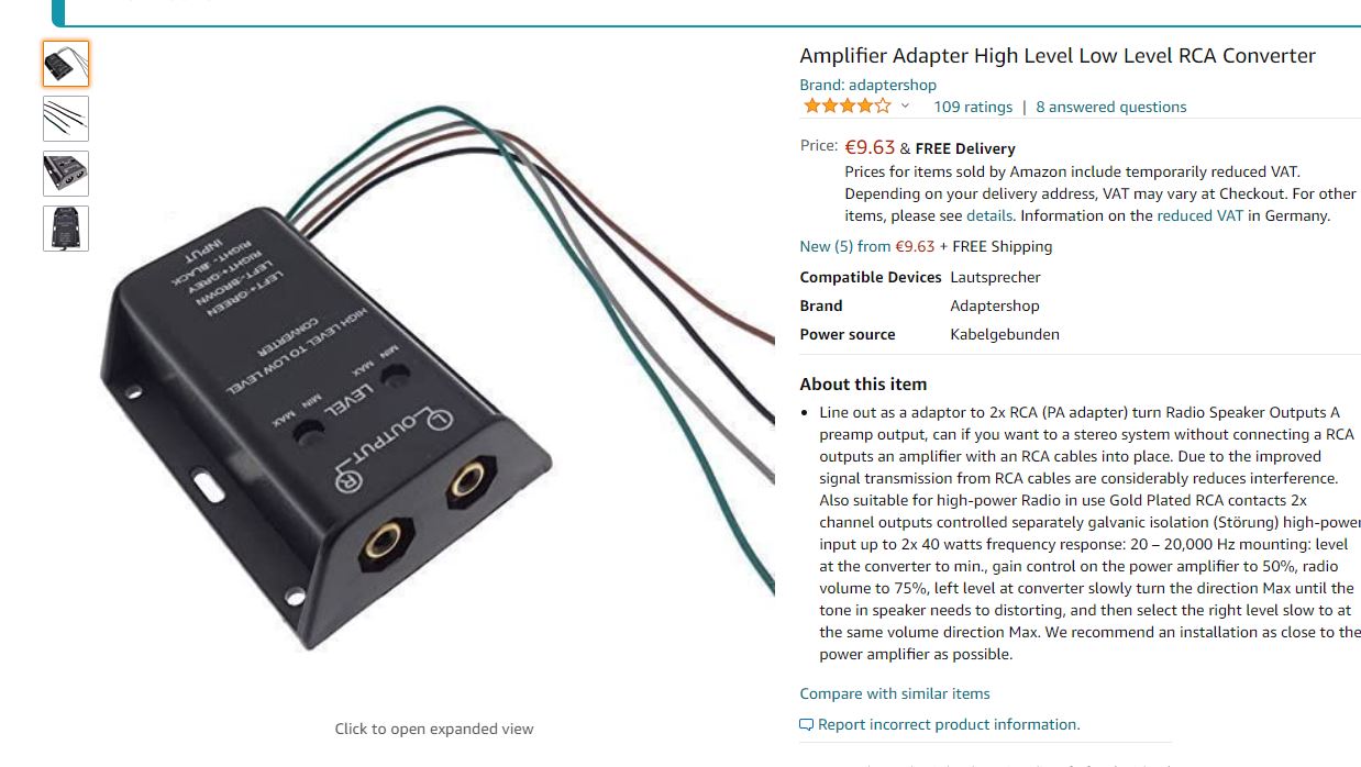 Der Adapter der vorhin erwähnte High-Low-Adapter. Habt ihr die Endstufe eingemessen?