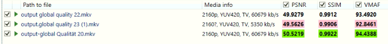 Statt der festen Bitrate von 1M werde ich als nächstes ICQ 20 oder so versuchen, bin aber total unschlüssig ob ich damit alle angebotenen Rechenoperationen der Graka ausnutze.
