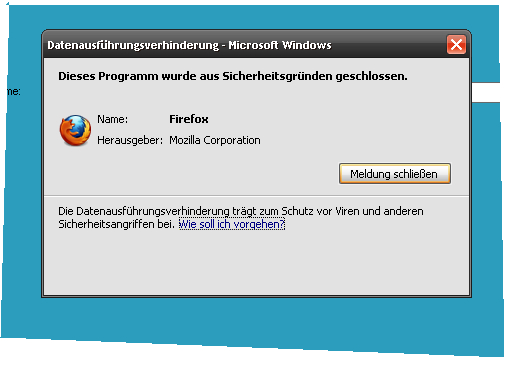 Habe jetzt eine Meldung bekommen, das Firefox geschlossen wird-Datenausführungsverhinderung- zu diesem Zeitpunkt war ich nicht im Internet, bz.w. online, kommt diese Meldung weil Avast sich aktuallisieren will obwohl ich nicht online bin? Bei Avira hatte ich so eine Meldung siehe Screen nicht. Sag schon mal danke für euere Hilfe