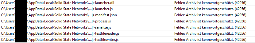 Heute jedoch wird im Ordner "solid state networks" angezeigt, Fehler: Archiv ist Kennwortgeschützt.