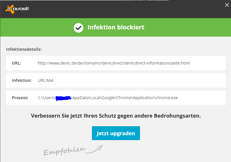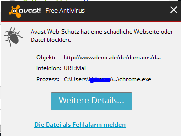 Avast Meldung (denic)