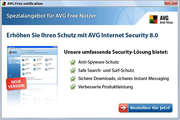 bei mir am PC hat sich gerade eben ein Fenster geöffnet, das weder im Systemtray, noch in der Taskleiste zu sehen ist. Im Titel steht "AVG Free notification".