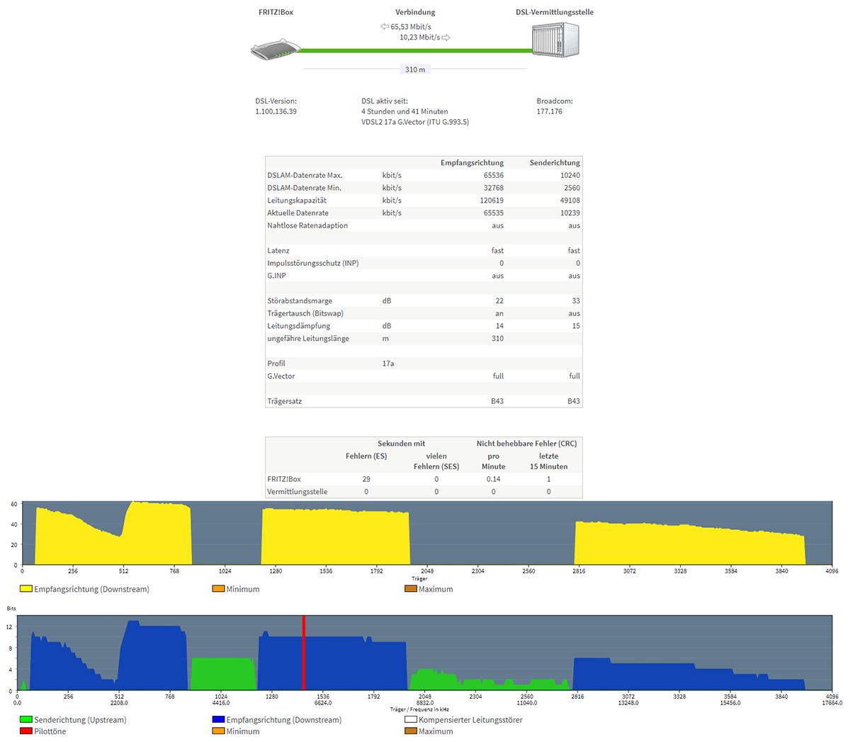 Diese recht große Anzahl von CRC-Fehlern passt zu der geringen Störabstandsmarge.