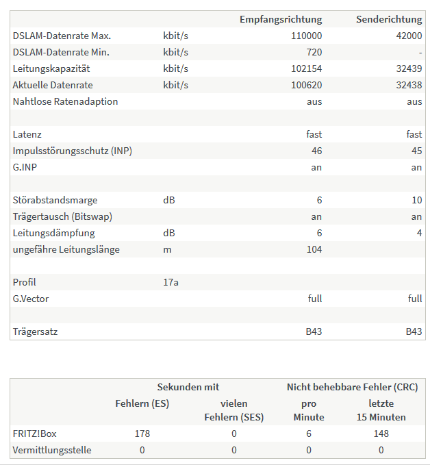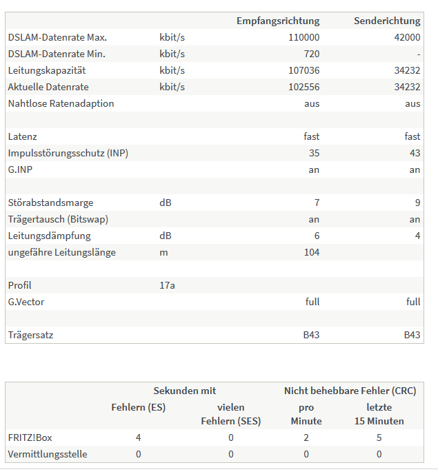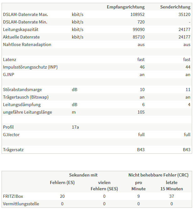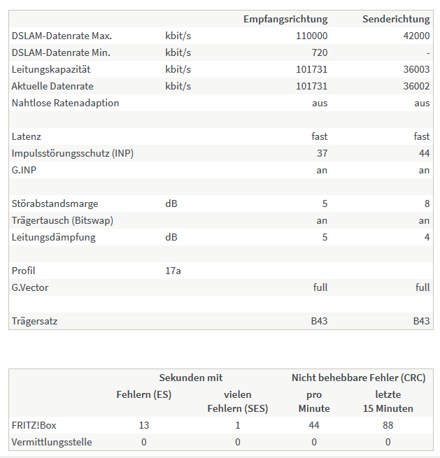 Ich habe eine Störabstandmarge nach dem Upgrade von 8 (Down) und 11 (Up), und bis jetzt keinen einzigen CRC Fehler.