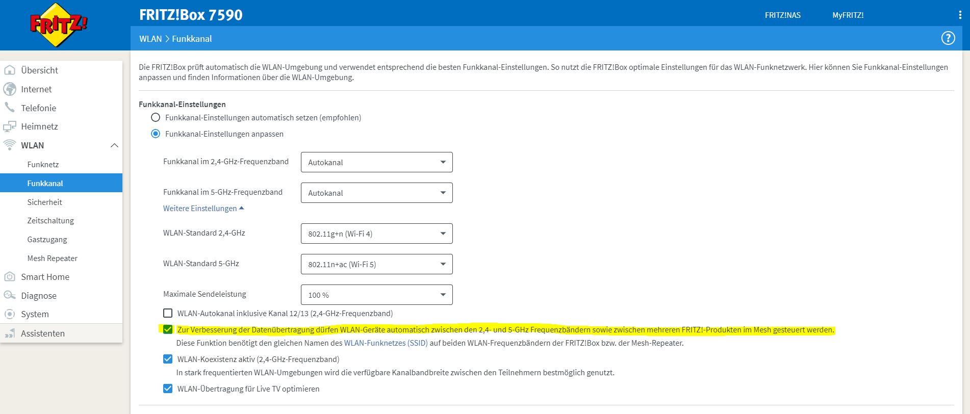 Laut AVM lässt sich Band Steering eben nicht abschaltenChristian1297 schrieb:Dafür braucht man doch kein Tutorial. Das ganze lässt sich abschalten in dem ein Klick in den Funkeinstellungen getätigt wird. In der Zeit wo du den Beitrag geschrieben hast wär das schon erledigt gewesen.