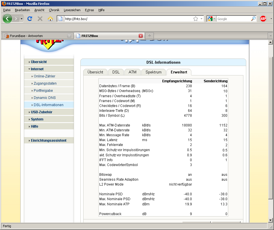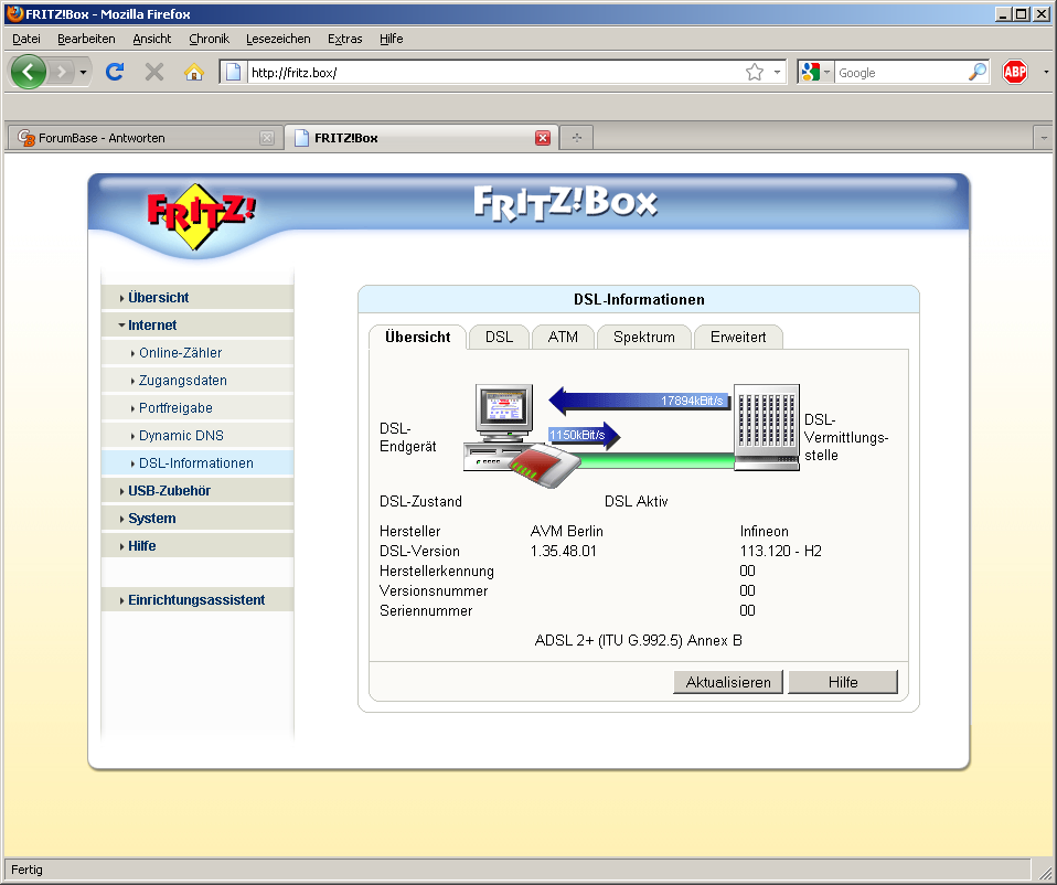 meine o.g. Fritzbox macht mir Probleme. Die Internetverbindung bricht sporadisch ab und die Downloadgeschwindigkeit ist sehr langsam (alle Seiten, Speedtests etc, 2 mbit).