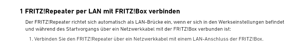 Nur will sich der Repeater trotz Androhung harter Konsequenzen nicht mit dem WLAN verbinden - selbst wenn er nur einen Meter von der Master-Fritzbox entfernt angebracht ist. Ich bin dabei wie in der Anleitung vorgegangen, musste den Repeater aber per LAN + Oberfläche zurücksetzen, da der 15 Sek Tastendruck den Modus nicht aurufen wollte...
