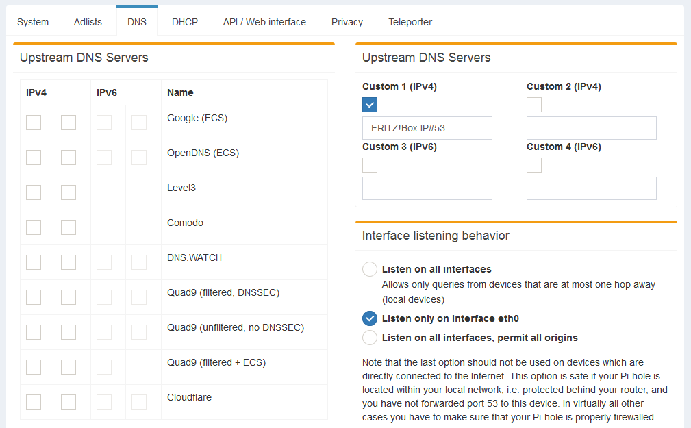 Hier ähnlich. Frage mich, ob der Pi, auf dem Pi-hole läuft, jetzt eigentlich weg kann. Mit unbound konnte man Pi-hole ja immerhin zu DNSSEC überreden. Funktioniert es denn, den FRITZ!Box-DoT-DNS als Upstream-DNS des Pi-hole zu nutzen und somit die Vorzüge von DoT mit Pi-holes Blockfähigkeiten zu kombinieren? Quasi so: