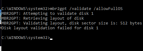 mbr2gpt /validate /disk:0 /allowFullOS -> Enter