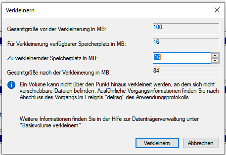 Was ist mit Shrink the disk gemeint?