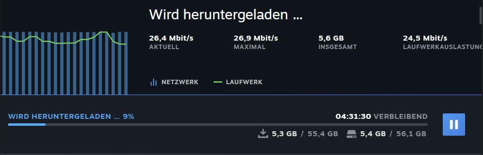 Bei einer Downloadrate von 25 Mbit/s dauert es doch schon sehr lange ein Game runterzuladen.