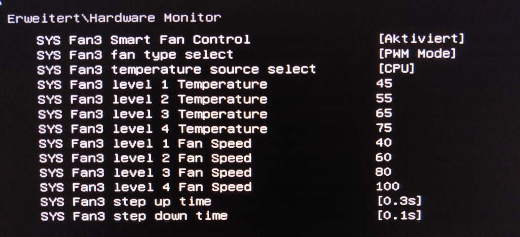 - In Windows Energieeinstellungen den Energiesparplan "Ausbalanciert" gewählt und in diesem Plan unter erweiterten Einstellungen den minimalen CPU-Leistungszustand auf 5% und den maximalen CPU-Leistungszustsand auf 100% gesetzt.